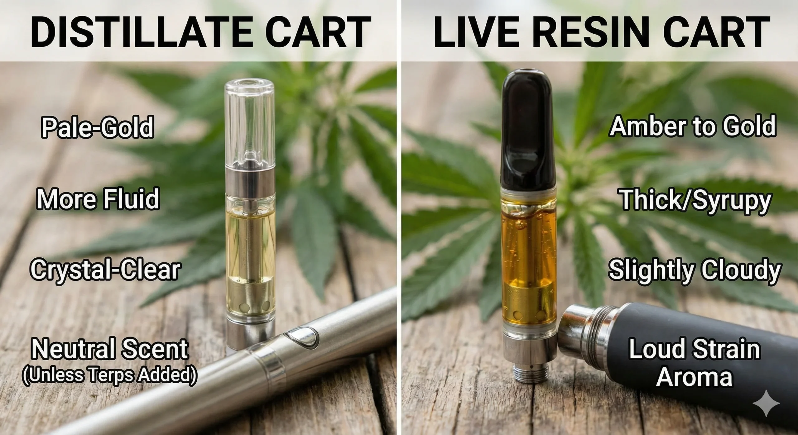 • Effects: Distillate = direct, intense; Live resin = balanced, nuanced