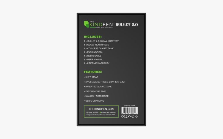 Meet Bullet 2.0 – your pocket-friendly powerhouse for cart and dab vaping. The full quartz bucket packs a punch, delivering nuanced, tasty hits that bring out delicate terpene profiles. At home or on-the-go, the Bullet 2.0’s perfect blend of portability and performance always shines.