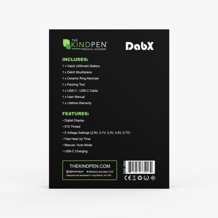 DabX packs the world of vaping in a package smaller than your phone. The matte finish? Sleek, stylish, and fingerprint-resistant because nobody’s got time for a vape that looks like it’s been handled by a butter-eating toddler. And versatility? Of the charts! DabX handles all types of dabs (the waxy ones and the crumbly ones) AND its 510-thread connection means you can use it with your carts, too. Thanks to one-click operation and 5 temperature settings, ease and customizability of use are guaranteed. For a full day, too… courtesy of its 400mAh battery.